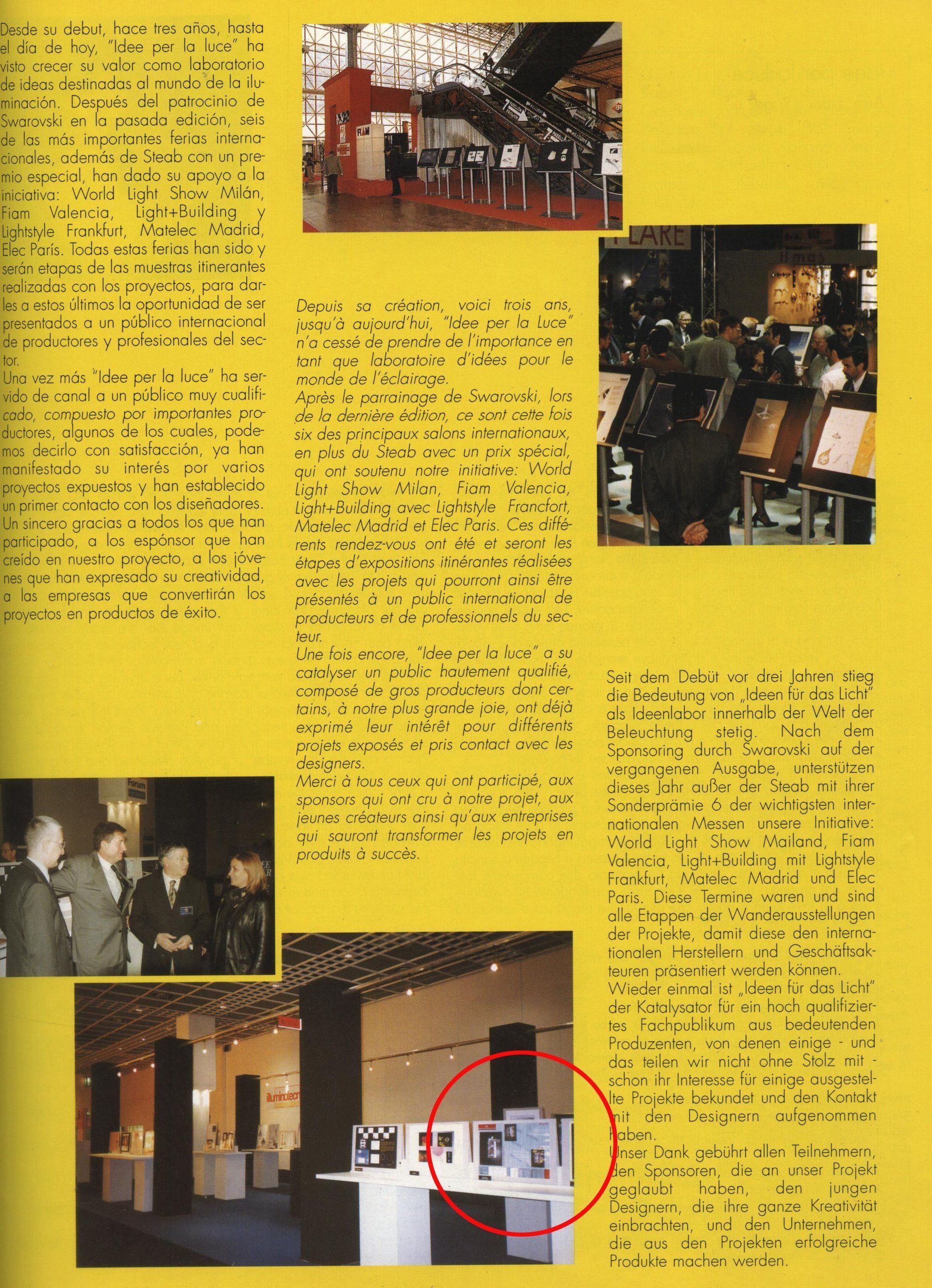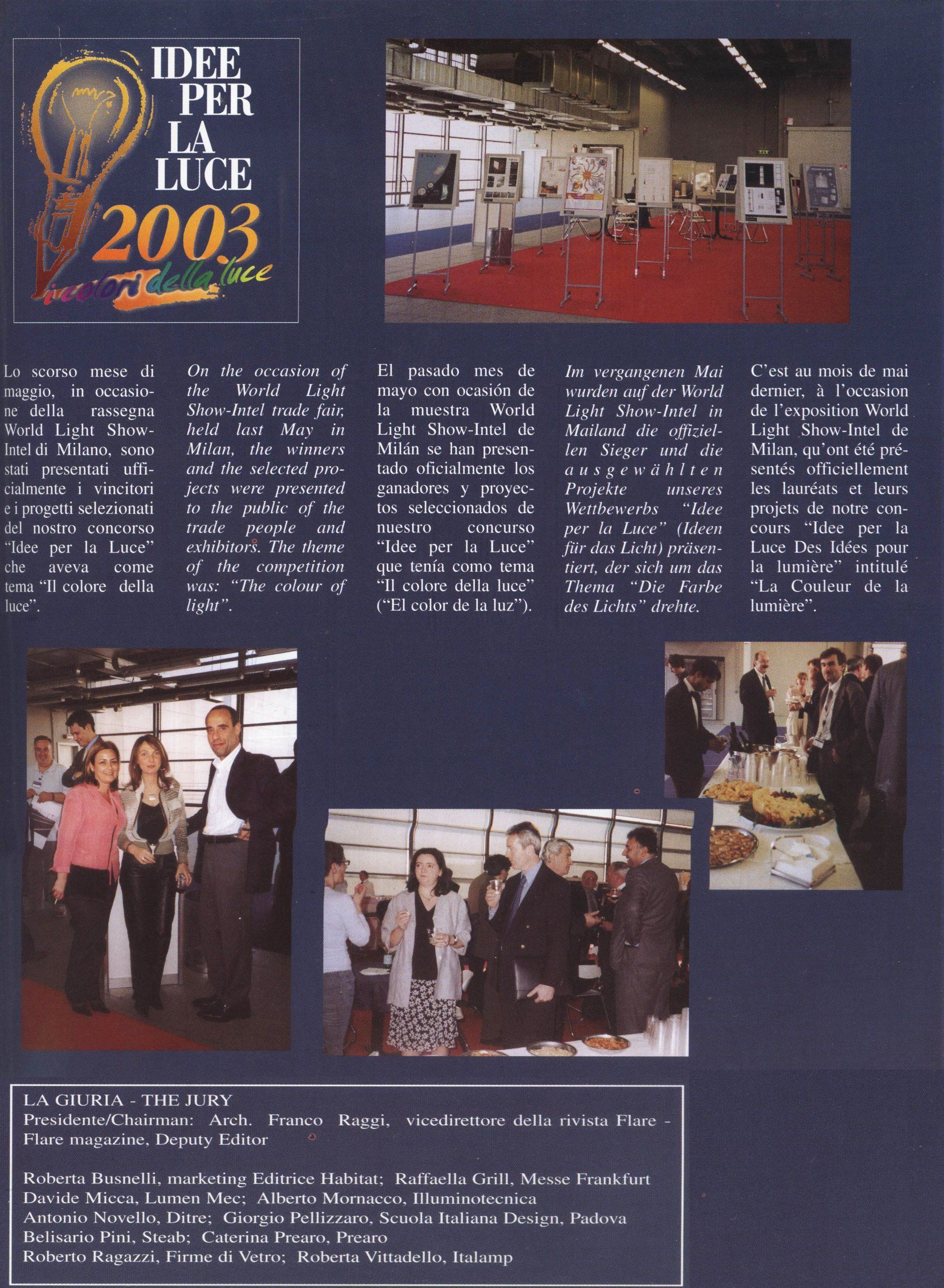 pubblicazioni e riconoscimenti rivista ILLUMINOTECNICA EUROPE LIGHT 2001 e 2003