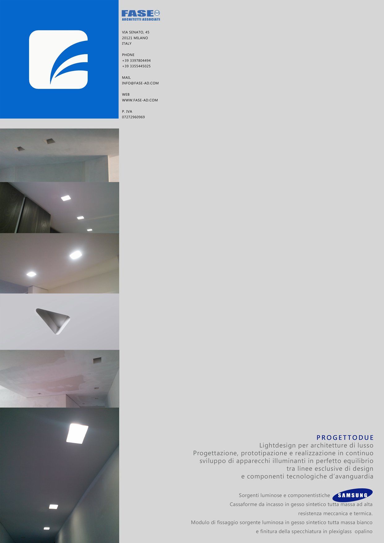 Lo studio si occupa da diversi anni di progettazione e prototipazione di apparecchi illuminanti, utilizzando le migliori tecnologie presenti sul mercato internazionale al fine di garantire il miglior risultato estetico e funzionale. La prima linea prodotta e commercializzata dallo Studio nel 2005 e denominata PROGETTOUNO è stata nel tempo sostituita dalla linea PROGETTODUE che migliora l'estetica del prodotto aumentandone le performance e riducendo i consumi. La linea PROGETTODUE prevede tre modelli da installare nelle contro soffittature in appena 9 cm. di spazio e ottimizza il tempo e la facilità di installazione di future manutenzioni. La semplicità delle linee legate a idee ed intuizioni innovative oltre all' impiego di materiali ecosostenibili da tempo caratterizzano i nostri oggetti e la ricerca del design.