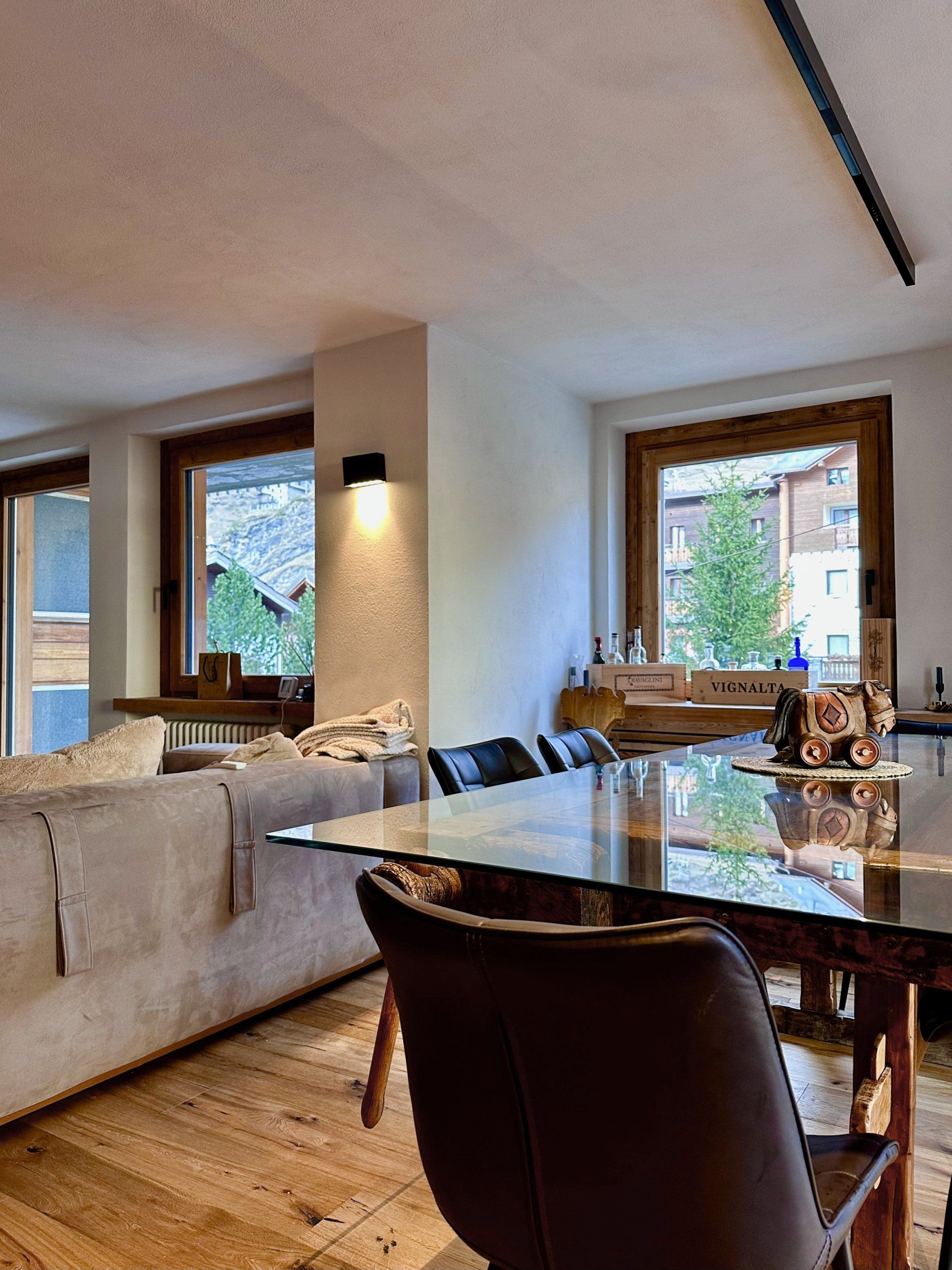 L'appartamento é situato al centro della prestigiosa località di Breuil / Cervinia ed è stato oggetto di un completo intervento di ristrutturazione al fine di creare un ambiente coerente con il contesto ma allo stesso tempo, moderno e prestigioso.